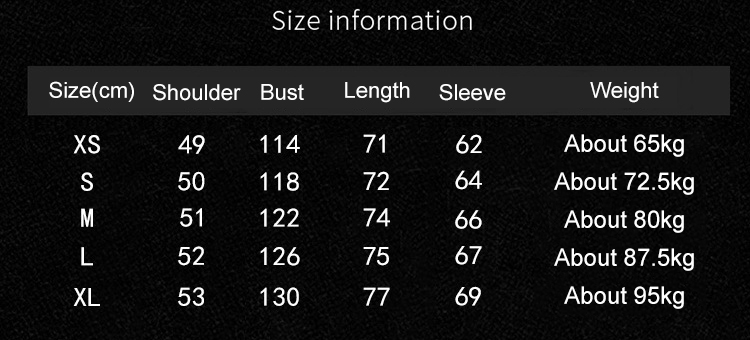 We pay attention to details and fashionable design to make this jacket the focus of your fashionable wardrobe. A variety of color options allow you to choose according to your personal preferences and style, whether it is classic black or fashionable red, it can meet your fashion needs.