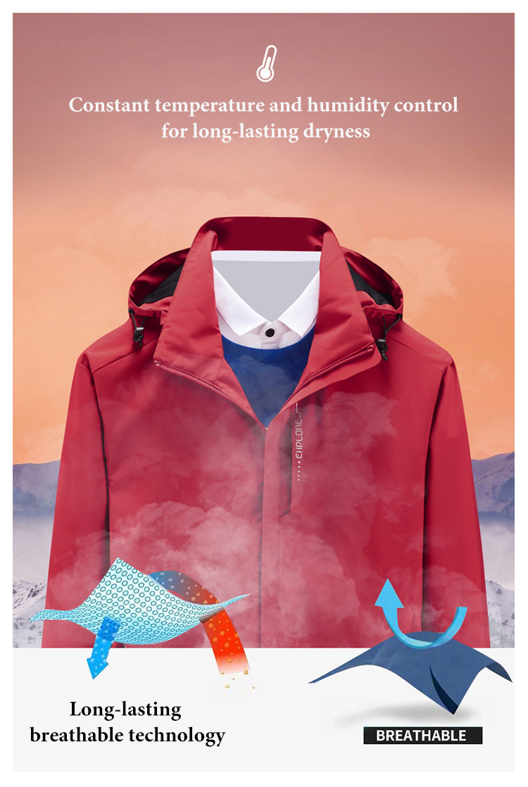 Made of high-quality windproof and waterproof fabric, this jacket provides effective protection from wind and rain in adverse weather conditions. Whether it's wind, rain or snow, you can enjoy the outdoors while staying dry.